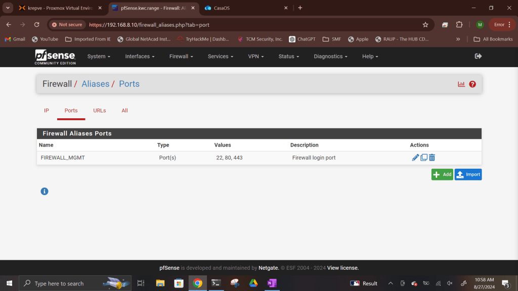 Firewall Ports: I set up aliases for important firewall ports (22 for SSH, 80 for HTTP, and 443 for HTTPS), streamlining the process of creating rules for services that rely on these ports.