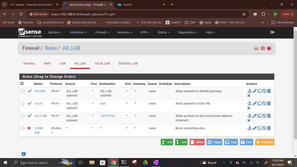 Working with pfSense has been a great way to deepen my understanding of network security and administration. As I continue to experiment with my virtual lab, I’ll be sharing more insights and experiences here on my blog. Stay connected for more updates!